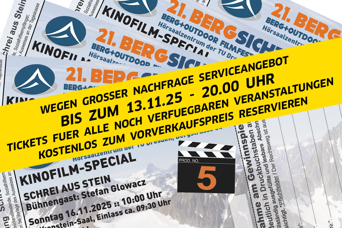 Im Ticketpreis für alle Vorträge und Filmblöcke ist das VVO-Kombiticket inklusive. Dies gilt nicht für das Bergsichtenkino und die Veranstaltungen im Rahmenprogramm.
